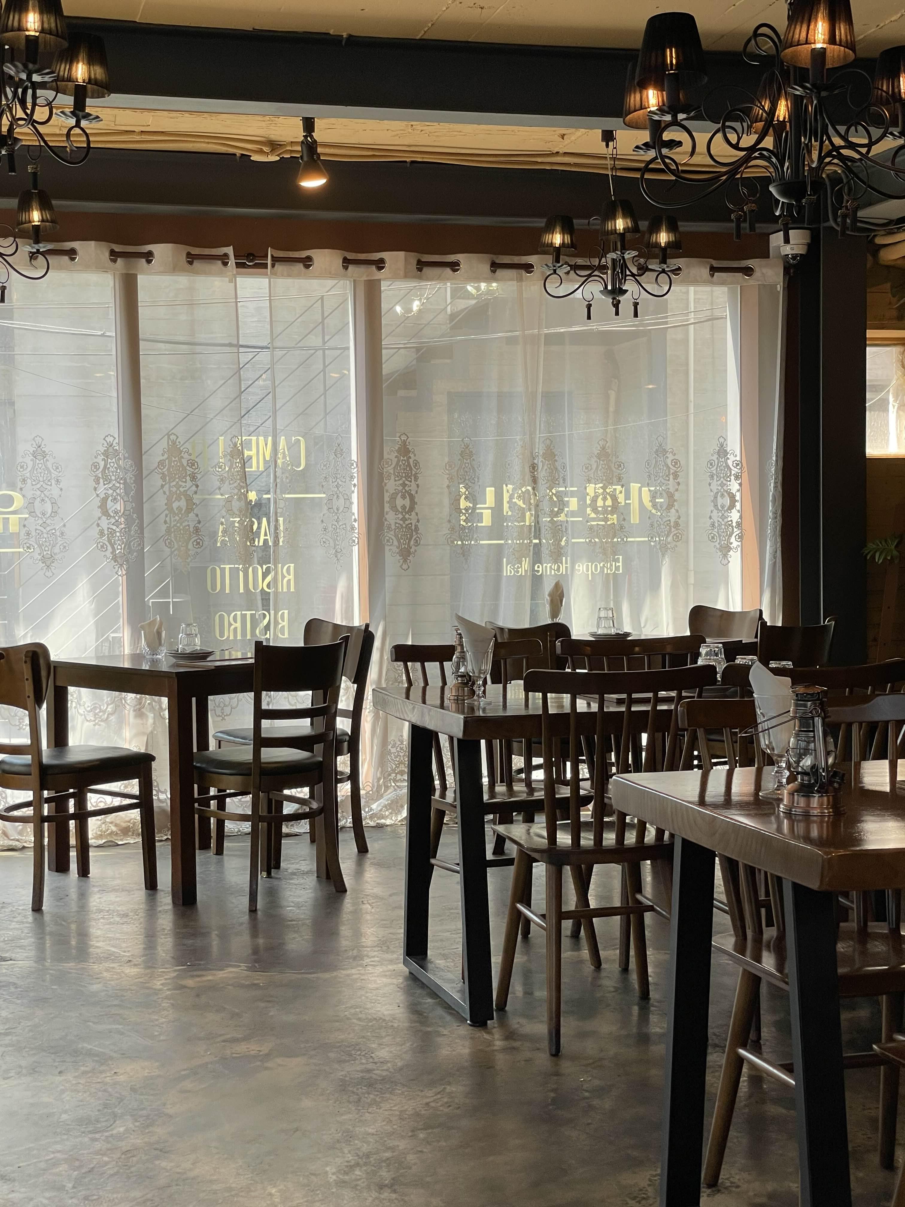 깔끔하고도 유럽풍이 느껴지는 인테리어 + 벽의 3면이 통유리와 창문으로 구성되어있어서 햇빛이 들어오면 분위기가 너무 좋다.